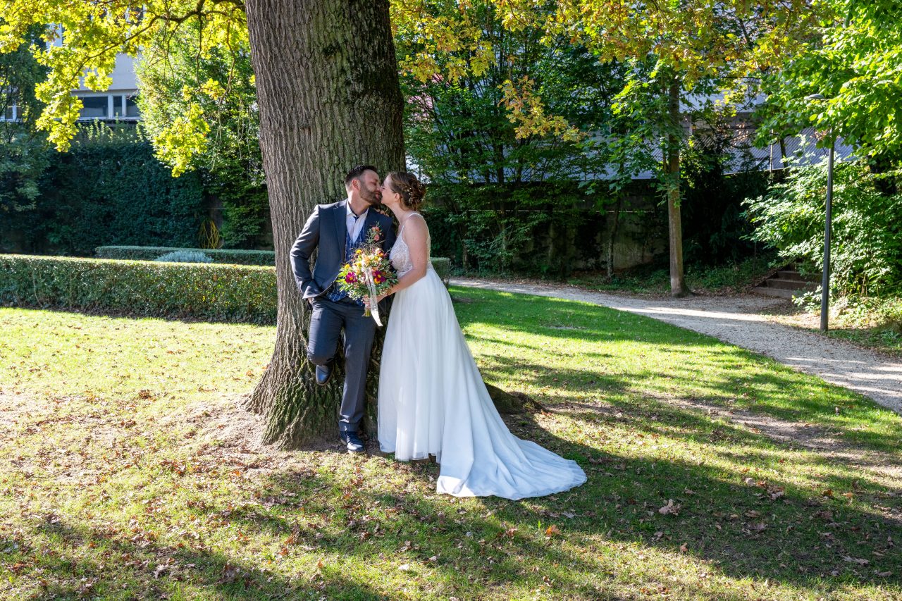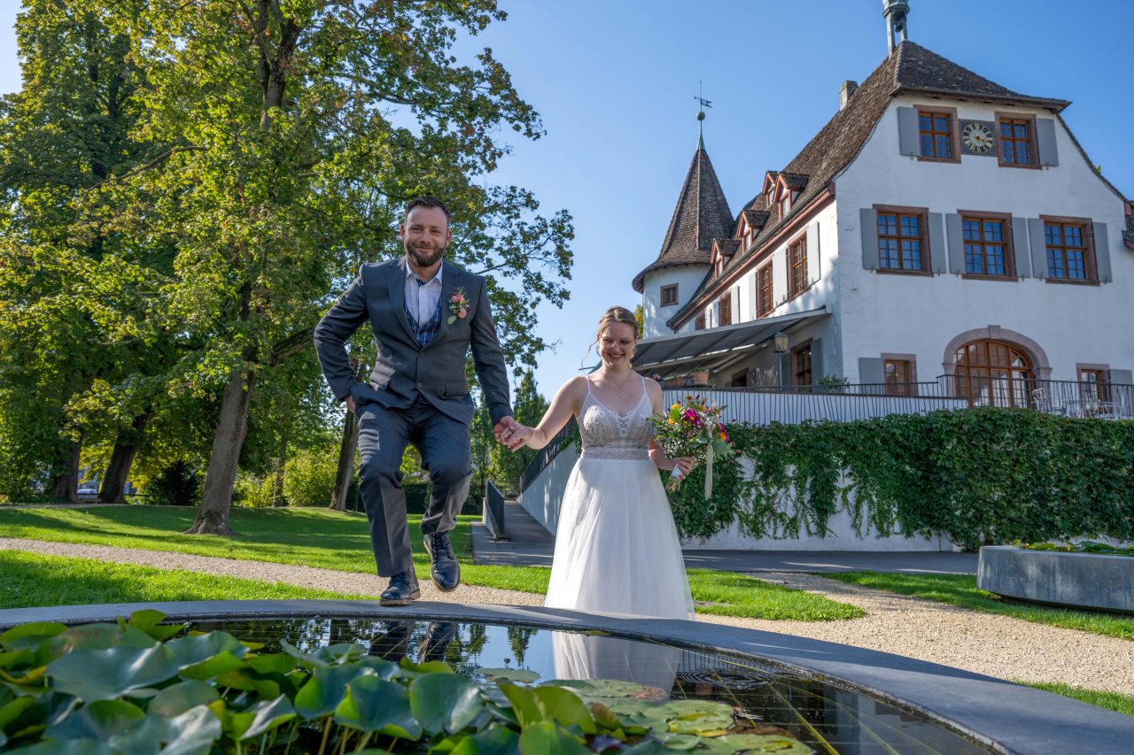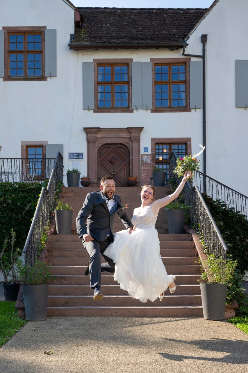 Stefanie und Stefan feierten an ihrer Hochzeit die Liebe und das Leben. Die Paarfotos im Schlosspark von Binningen sind der Beweis dafür, dass das Paar für Spässe und jede Art von Idee der Fotografin zu haben war. Die dabei entstandenen Fotos spiegeln die Ausgelassenheit und den Schalk des Brautpaares wider. Dabei kamen aber auch Momente voller Romantik nicht zu kurz