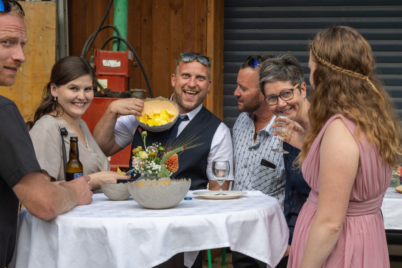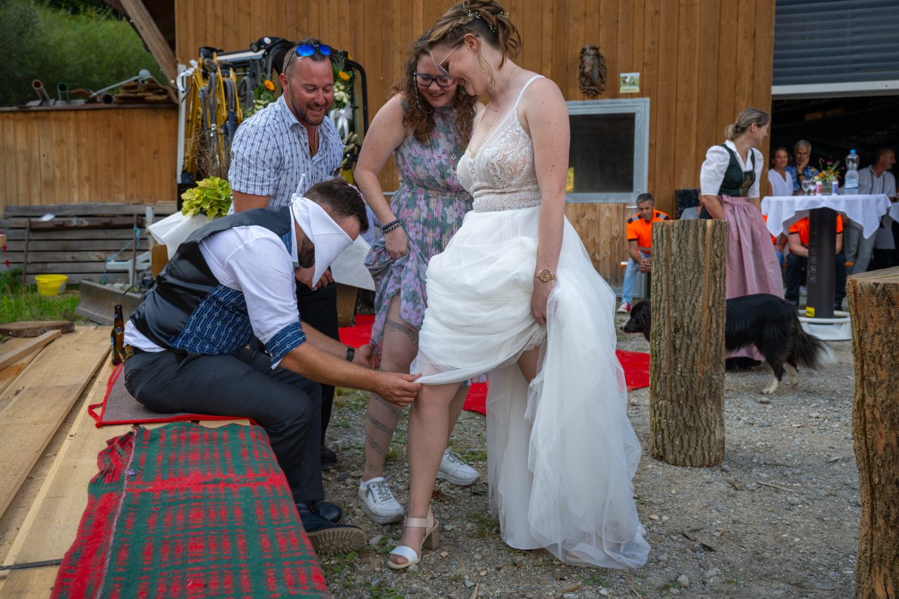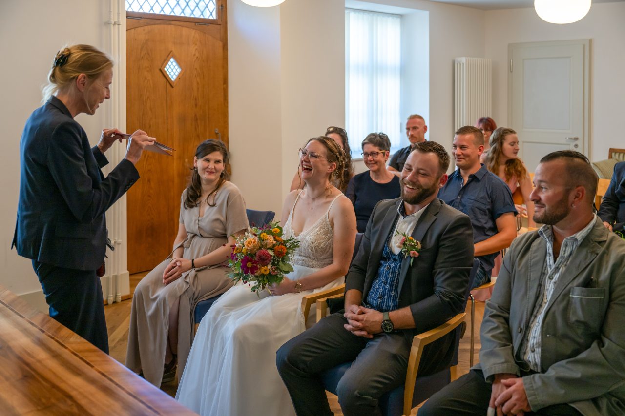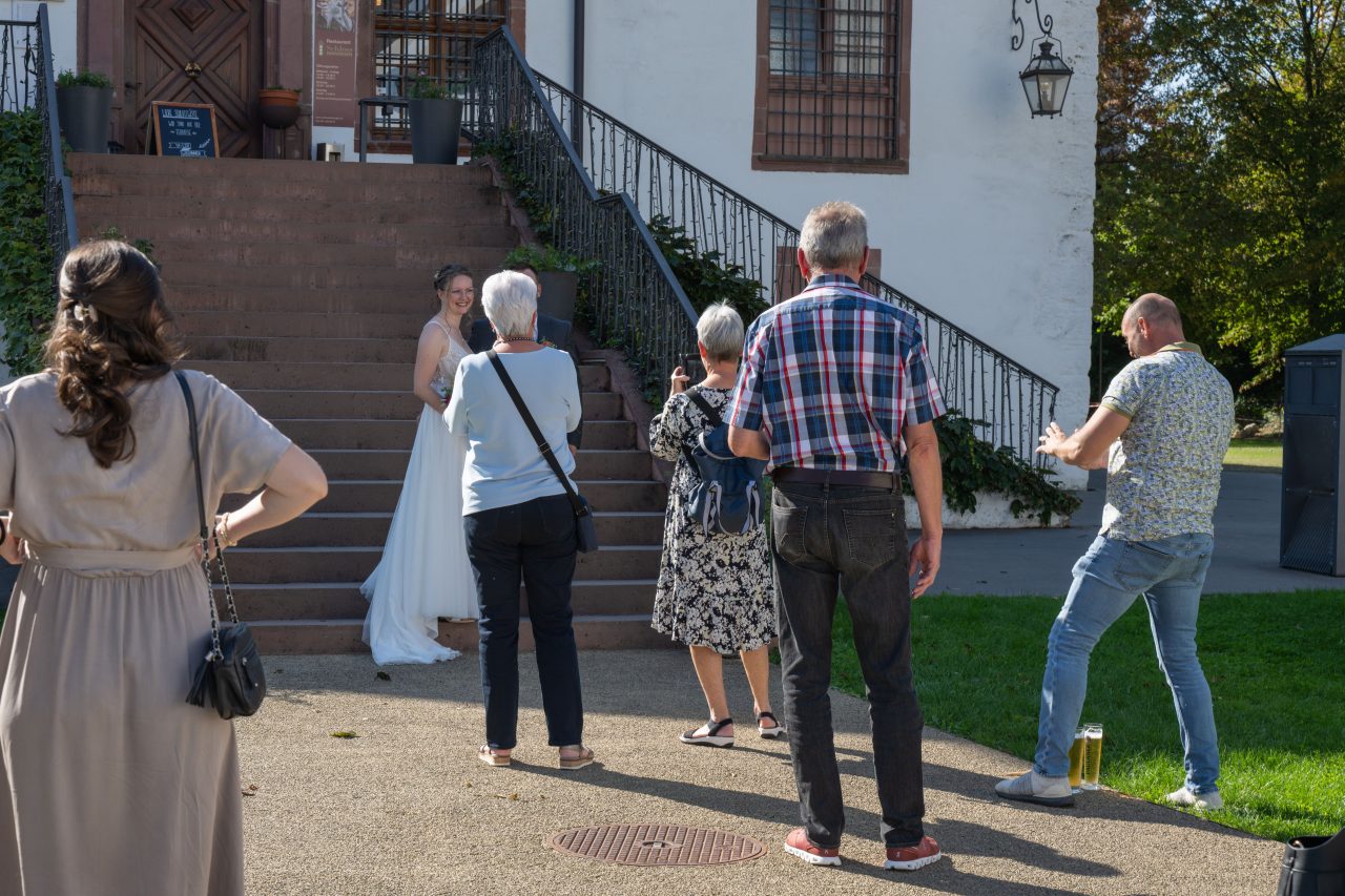 Stefanie und Stefan feierten an ihrer Hochzeit die Liebe und das Leben. Die Paarfotos im Schlosspark von Binningen sind der Beweis dafür, dass das Paar für Spässe und jede Art von Idee der Fotografin zu haben war. Die dabei entstandenen Fotos spiegeln die Ausgelassenheit und den Schalk des Brautpaares wider. Dabei kamen aber auch Momente voller Romantik nicht zu kurz